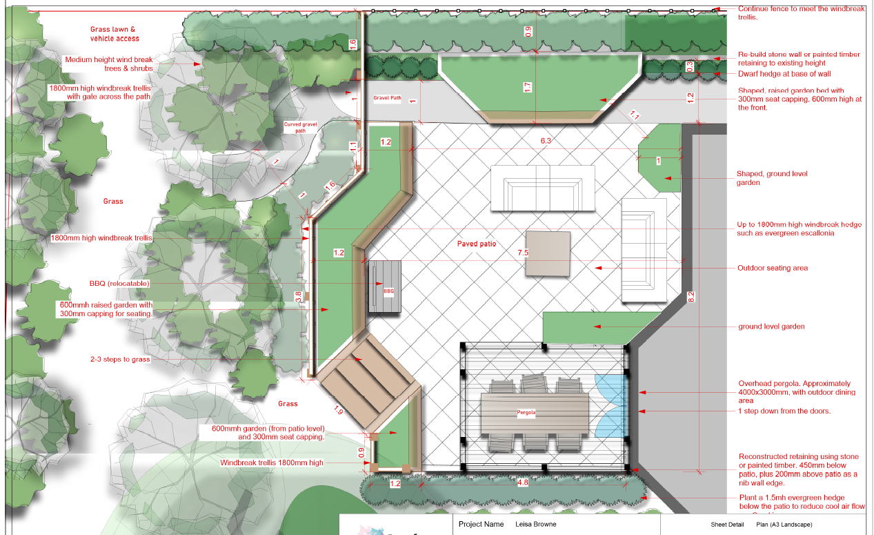 Every plan created by Leaf Landscape Design is bespoke — tailored to you, your property, and the way you live. No two plans are ever the same. We design with a client‑focused approach that reflects your needs, your home’s style, existing features, and the unique microclimate of your landscape.